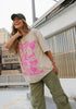Your favorite band tee, but make it Get Your Pink Back! Part of the Flock N Roll Collection, this tee has a pink rock n roll inspired design on a beige tee that’s heavyweight and slightly faded. The tee’s design has elements of rock n roll and a slight nod to Lindsey’s time in Las Vegas.