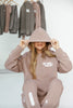 This super-cozy hoodie embodies the story of flamingos — and the heart behind Get Your Pink Back. Beyond its unique design details, you’ll find a subtle message on the wrist: “Patience.” A reminder to practice patience not only with others, but yourself as well. Check out the Dusty Pink Relaxed Fit Sweatpants to complete the set or mix and match with other sweat sets.